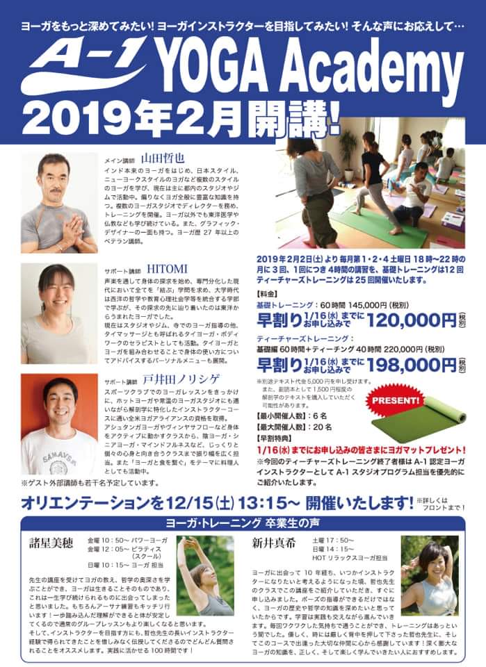 ※今回のティーチャーズトレーニング修了者様はA-1認定ヨガインストラクターとして